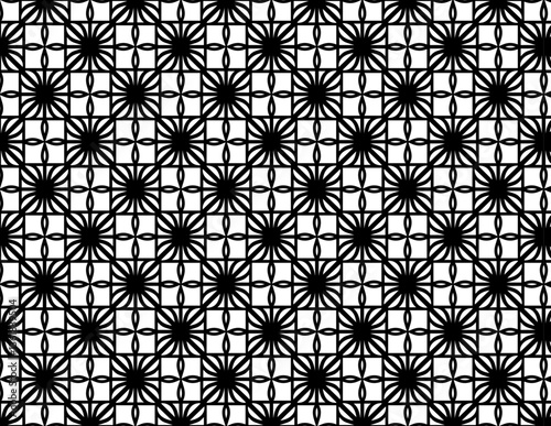 Symmetrical Black and White Design with Star-Like and Oval Geometric Elements