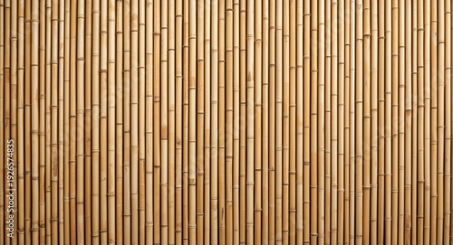 Symmetrical rectangular bamboo stick wall texture background featuring amber golden tints and copy space