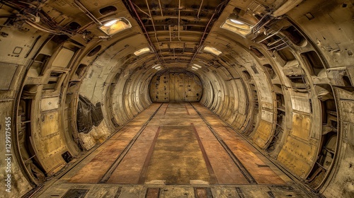 symmetric, view, down, empty, jet, bridge, tunnel, converging, line, bright, light, end, perspective, interior, space, design, architecture, shadow, depth, contrast, pattern, metal, structure, vintage, travel, transportation, corridor, aviation, aerodrome, pathway, futuristic, journey, exploration, opening, inviting, huge, surreal, industrial, haunting, visual, scenery, environment, ambience, unique, quiet
