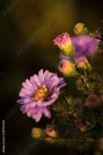 Symphyotrichum novi-belgii, of the family Asteraceae, covered with the early autumn frosts.