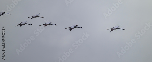 Synchron durch den Himmel - Kraniche im Schwebeflug