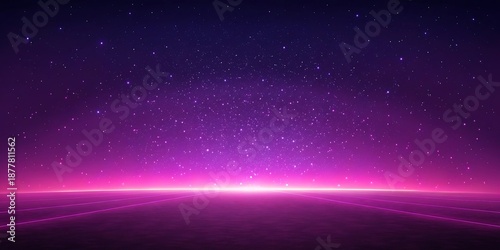 Synthwave neon horizon background eighties style glowing grid retro futurism digital landscape with starry space