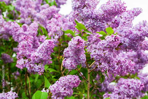 Syringa vulgaris. Blooming lilac. Lush bloom of common lilac.