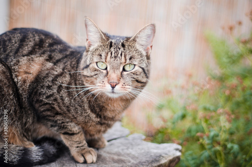 tabby cat, tabby, stump, predator, outdoors, nature, freedom, female, felino, cat, animal
