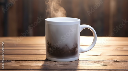 table, hot drink, mug, illustration, ceramic, steam, rich, dark, elegant, handle, glossy, finish, simple, beverage, drink, hot, morning, caffeine, aroma, warmth, design, minimalist, classic, smooth, texture, cosy, stylish, kitchen, home, decor
