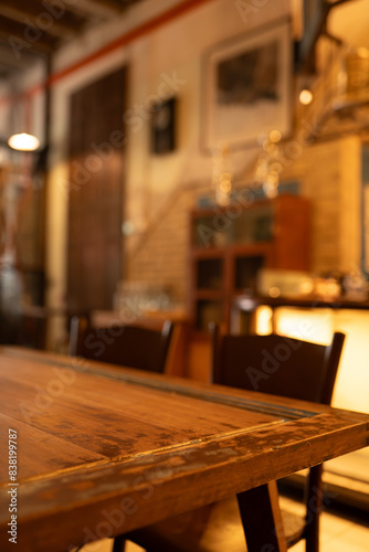 table, eatery, kitchen, display, montage, dais, product, dark, brown, interior, cafes, background, inside, indoor, room, tabletop, countertop, desk, desktop, nobody, empty, wood, wooden, blank, surface, perspective, image, colours, closeup, closeup, dining, house, old, retro, vintage, dining room