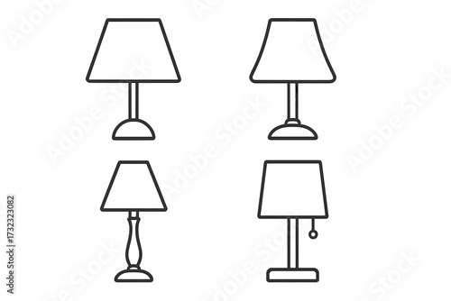 lamp, table lamp, icon, vector, illustration, cartoon, set, collection, home decor, lighting, interior, furniture, desk lamp, electrical, modern, classic, simple, stylish, design, decoration, web icon, household, minimal, outline, black-and-white