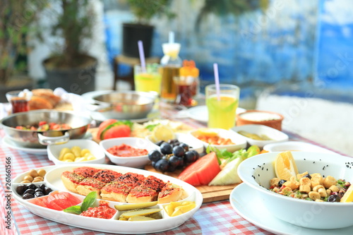 table with food in a restaurant