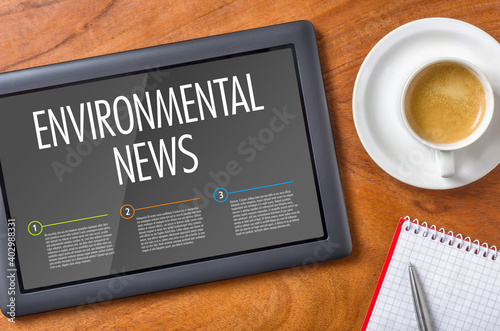 nature, environment, environmental, ecology, climate change, organic, pollution, sustainability, text, newspaper, news, word, media, information, message, press, headline, business, tablet, computer, office, desk, hot drink, online, break, cyberspace, cup, digital, table, wood, espresso, display, work, multimedia, touch screen, monitor, technology, pen, topview, workplace, notebook, screen, laptop, notepad, desktop, pad, wooden, web, info