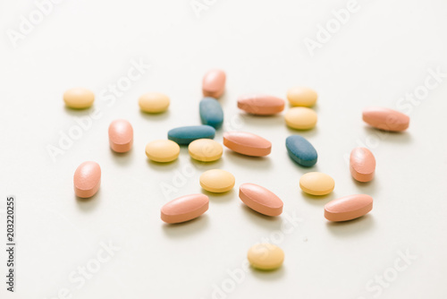Tablets and capsules over white background