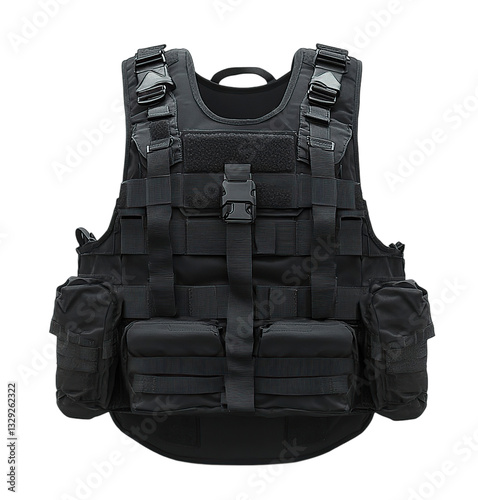 law enforcement, equipment, protection, safety, defense, soldier, army, marin, airforce, police, swat, special forces, military, combat, uniform, vest, black, nylon, fabric, gear, apparel, clothing, accessory, supply, tactical, protective clothing, front view, isolated, dark background