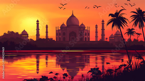 Taj mahal at sunset. Taj Mahal at Sunrise. Illustration