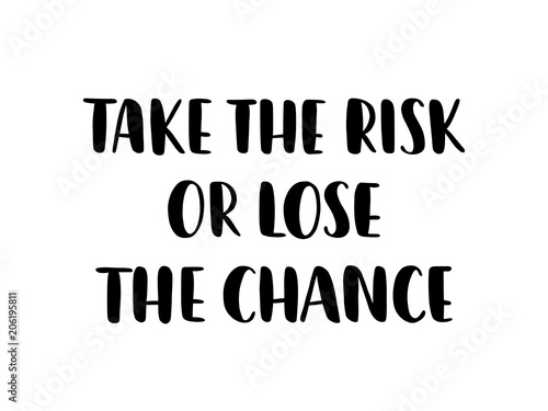 Take the risk or lose the chance. Inspiration text. Vector illustration. Hand lettering typography on white background.