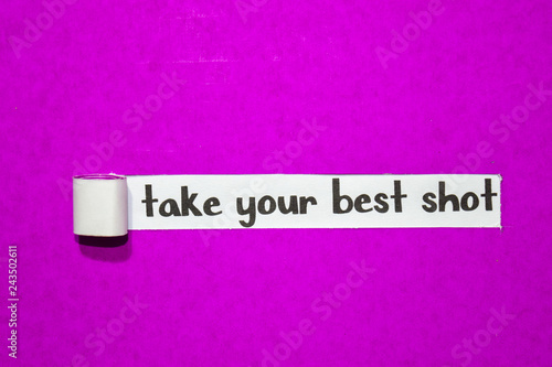 Take your best shot text, Inspiration, Motivation and business concept on purple torn paper