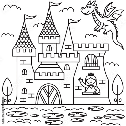 castle, vector, cartoon, house, illustration, building, architecture, tower, fantasy, mediaeval, fairy, town, princess, city, old, art, fairy tale, home, fortress, design, tale, village, palace, flag, vintage