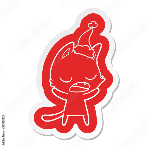 talking cat cartoon sticker of a wearing santa hat