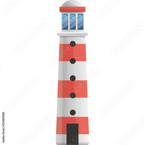 lighthouse, tower, coastal, navigation, maritime, sea, ocean, beacon, warning, structure, architecture, building, tall, cylindrical, red, white, stripes, banded, dark, door, entrance, window, glasses, light, signal, aid, marin, voyage, safety, guidance, coastline, shore, vintage, classic, isolated, transparent, background, icon, symbol, graphic