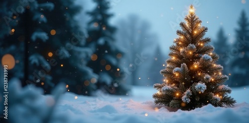 tall decorated evergreen tree with sparkling icicles hanging from the branches, Trees, Seasonal, Winter