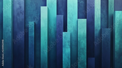 Tall, glossy D bars in various shades of blue and green, arranged in an upward trend on a dark, textured background
