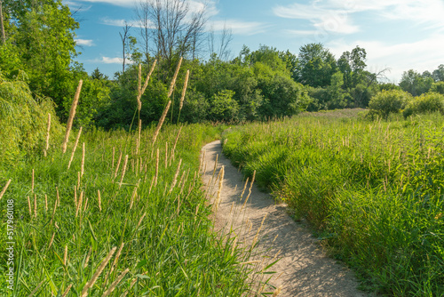 Tall grasses on a flowering field