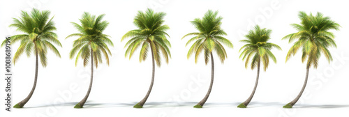 Tall palm trees with lush green fronds create tropical vibe, perfect for summer settings. Their curved trunks add unique aesthetic to any landscape
