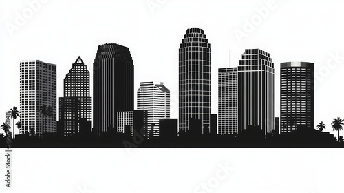 Tampa City Skyline in Black Silhouette. A Vector Design of Tampa's Iconic Cityscape Isolated on a White Background, Representing Urban Life, Modern Architecture, and Business Travel Concepts.