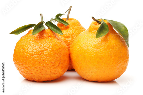 tangerines with green leaves isolated