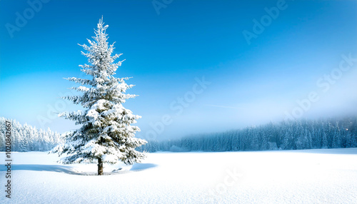 Tanne einzeln in Winterlandschaft
