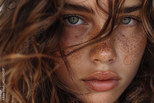 Tanned Skin. Portrait of Teenage Girl with Brown Wavy Hair Showing Beauty and Confidence