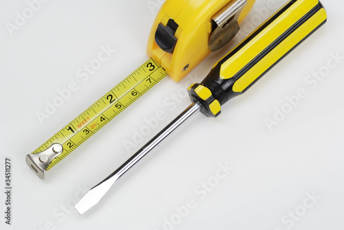 measuring, work tool, equipment, isolated, home improvement, single object, clipping path, isolated on white, nobody, horizontal, closeup, studio shot, handle, clean, steel, yellow, photo, color image, tool, tape measure
