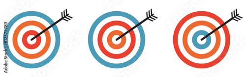 Target icons set. Goal symbol collection. Simple target with arrow. Darts icon. Hitting the bullseye icon line and flat style