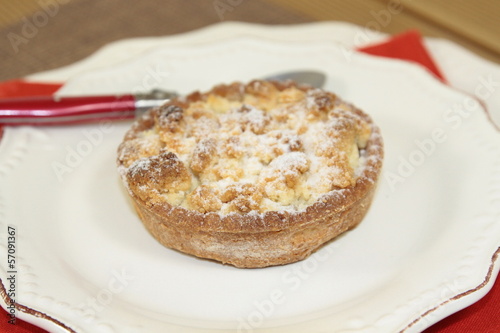 tartlet, crumbled, pastry, dessert, pie, apple, plate, sugar, icing sugar