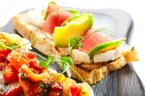 baguette, tuna, healthy, dish, eatery, tasty, eating, avocado, vegetable, meal, baked, seafood, menu, bread, breakfast, diet, antipasto, traditional, snack, mediterranean, pepper, background, bruschetta, food, wooden, roasted, greenery, culinary, served, delicious, toast, lunch, fish, composition, cookery, delicacy, cooking, sandwich, cooked, italian, presentation, tray, exquisite, herb, sliced, cheese, epicure, starter