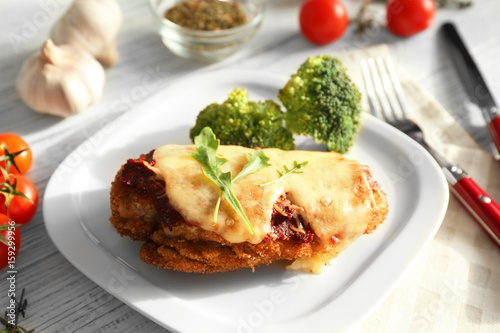 arugula, background, breast, broccoli, cheese, chicken, closeup, cooking, cookery, delicious, diet, dinner, eating, fillet, food, foodstuff, fork, fresh, fried, garlic, epicure, herb, ingredient, italian, knife, marinade, meal, meat, nutrient, nourishment, organic, parmesan, plate, portion, receipe, roasted, sauce, spicey, table, tasty, tomatoes, traditional, vegetable