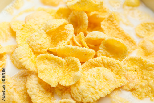 Tasty cornflakes with milk, closeup