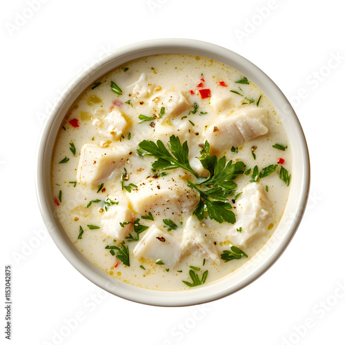 Tasty Fish chowder Isolated On Transparent Background