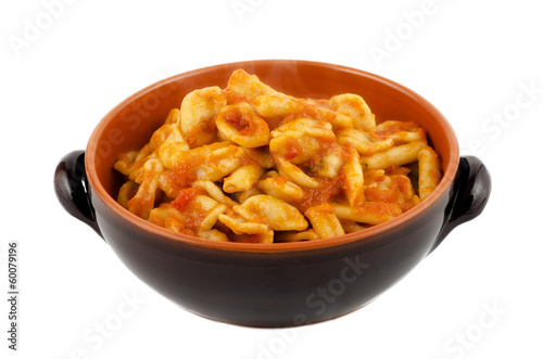 Tasty homemade orecchiette with tomato sauce