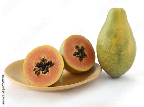 tasty, oriental, fruit, orange, flesh, papaya, wholesome, vegetarian, food, vitamin, color image, isolated, fresh, green, tropical, healthy, ripe, sweet, diet, half, exotic, cut, juicy, raw, freshness