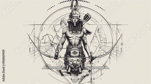 tattoo art line, illustrated in illustrator, perfect generation without design errors, pure white and clean background, A geometric and realistic style tattoo, featuring a combination of mythological.
