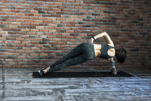 1, girl, people, female, woman, young, beautiful, healthy, lifestyle, sport, attractive, health, living, caucasian, fit, gym, body, active, physical exercise, fitness, indoor, training, exercise, room, home, slim, weight, athletic, activewear, wellness, push, tattoo, loss, yoga, sporty, mat, routine, doing, abs