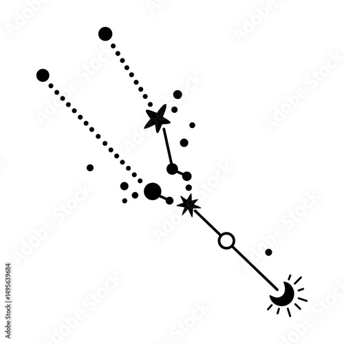 Taurus Star Constellation - black and white zodiac vector hand drawn illustration