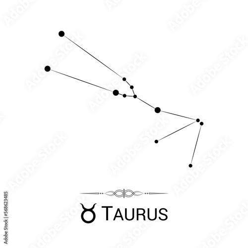 Taurus Zodiac Symbol Stars Stellar Constellation Black-White Silhouette Isolated on White Background