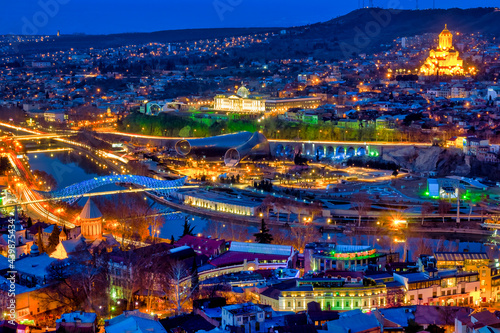 tbilisi, georgia, georgian, city, city landscape, capital, view, panorama, blue, hours, river, old, night, landmark