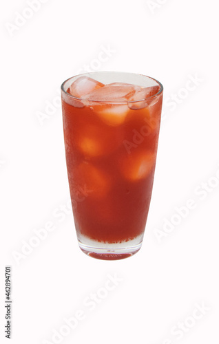 Tea lemon cocktail cola with ice on tall glass. This refreshing summer drink with a sweet and sour taste is popular all over the world. Isolated on white background.