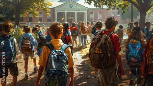 teacher, first, day, school, illustration, nervous, new, friends, classroom, supply, backpack, schedule, bell, learning, book, crayons, desk, blackboard, recess, playground, cafeteria, uniform, homework, bus, morning, assembly, library, gym, music, science