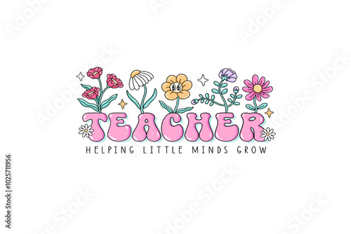 Teacher helping little minds grow, Groovy Teacher Png Sublimation T shirt design