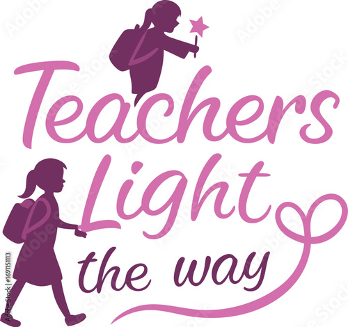 teacher, teacher, light, way, silhouette, children, children, girl, boy, education, appreciation, vector, illustration, design, graphic, school, student, learning, teaching, pink, text, quote, phrase, backpack, wand, star, positive, inspirational, motivational, artwork, clip art, drawing, art, element, decorative, typography, lettering, message, greeting, card, gift, present, thank you, support