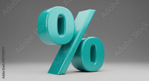 Teal 3D percentage symbol on gray background, showcasing discount, sale, or finance concept