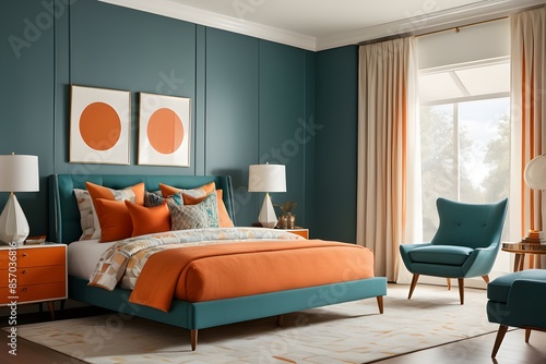 Teal and Orange Bedroom Oasis