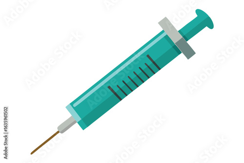 Teal Medical Syringe Illustration Representing Healthcare and Vaccination Efforts With Distinct Markings and a Sharp Needle Pointing to Prevention